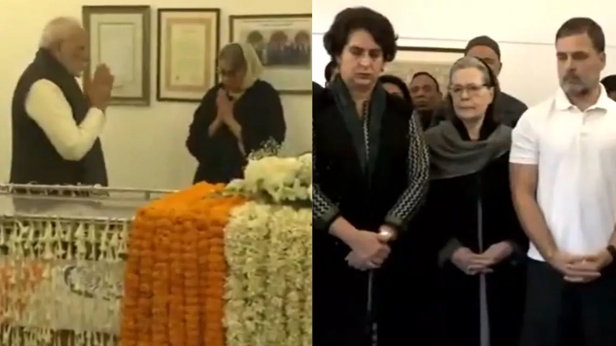 कांग्रेस सांसद सोनिया गांधी, राहुल गांधी, प्रियंका गांधी वाड्रा और केसी वेणुगोपाल और पार्टी के अन्य नेताओं ने दिवंगत पूर्व प्रधानमंत्री डॉ मनमोहन सिंह के आवास पहुंचकर उन्हें श्रद्धांजलि दी।