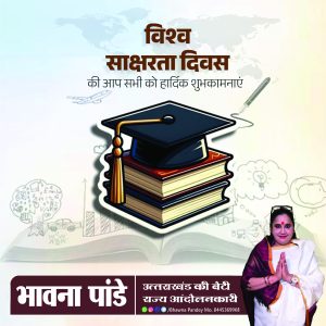 देहरादून। उत्तराखंड की बेटी, राज्य आंदोलनकारी एवं प्रसिद्ध समाजसेवी भावना पांडे ने ‘विश्व साक्षरता दिवस’ के अवसर पर समस्त देशवासियों को हार्दिक बधाई एवं शुभकामनाएं दी हैं।