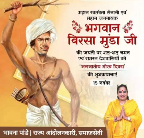 जनसेवी भावना पांडे ने कहा- आदिवासी समाज की दशा और दिशा बदलकर नवीन सामाजिक और राजनीतिक युग का सूत्रपात करने वाले, महान स्वतंत्रता सेनानी, आदिवासी स्वाभिमान के प्रतीक भगवान बिरसा मुंडा जी के विचार हम सभी को जनजातीय समाज के सतत उत्थान एवं सशक्तिकरण हेतु निरंतर प्रेरित करते रहेंगे।
