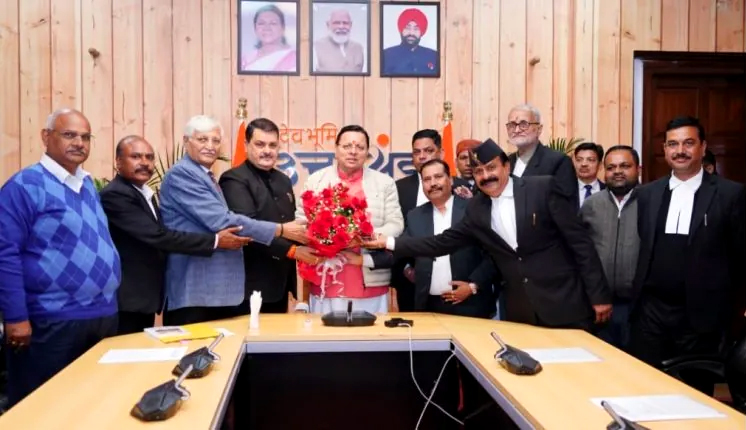 देहरादून। मुख्यमंत्री पुष्कर सिंह धामी से बार एसोसिएशन देहरादून की संघर्ष समिति के अध्यक्ष प्रेमचंद शर्मा तथा बार एसोसिएशन देहरादून के अध्यक्ष मनमोहन कंडवाल के नेतृत्व में पदाधिकारियों ने भेंट की। आंदोलन कर रहे वकीलों के प्रतिनिधिमंडल ने नए जिला न्यायालय परिसर में अधिवक्ताओं हेतु आवंटित भूमि तथा पुराने जिला जज परिसर की भूमि अधिवक्ताओं के पक्ष में आबंटित करने के साथ ही दोनों स्थानों पर अधिवक्ताओं के चैंबरों के निर्माण की मांग करते हुए ज्ञापन सौंपा।