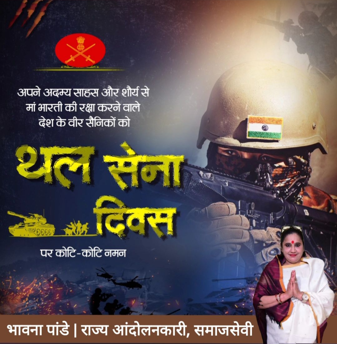इस अवसर पर जारी अपने संदेश में समाजसेवी भावना पांडे ने कहा- अपने अदम्य साहस और अद्भुत पराक्रम से माँ भारती की रक्षा करने वाले देश के वीर सैनिकों एवं समस्त देशवासियों को ‘थल सेना दिवस’ की हार्दिक बधाई एवं शुभकामनाएं।