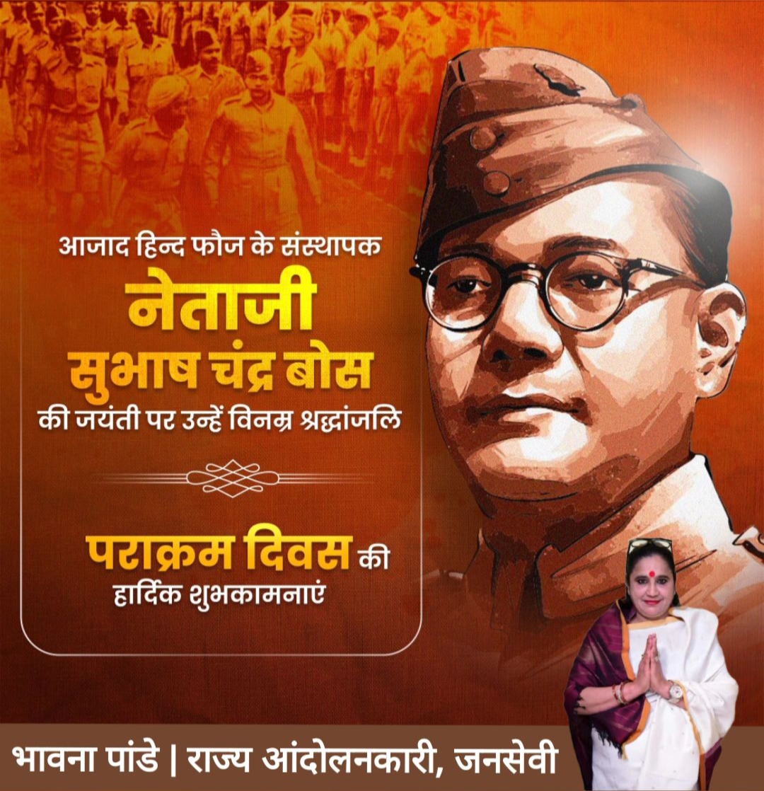 स्वाधीनता आंदोलन के महानायक ‘नेताजी’ सुभाष चंद्र बोस की जयंती पर उन्हें श्रद्धांजलि अर्पित करते हुए जनसेवी भावना पांडे ने कहा- भारत के क्रांतिकारियों के सिरमौर के रूप में ‘नेताजी’ सुभाष चंद्र बोस ने आजादी की लड़ाई को एक नई दिशा दी। उनका विराट व्यक्तित्व हर भारतीय को प्रभावित करता है। देश के प्रति उनकी सेवाओं के लिए कृतज्ञता ज्ञापित करते हुए ‘नेताजी’ की पावन स्मृतियों को नमन।