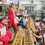 महिला अपराधों पर कांग्रेस में उबाल, बैरिकेड पर चढ़कर किया प्रदर्शन